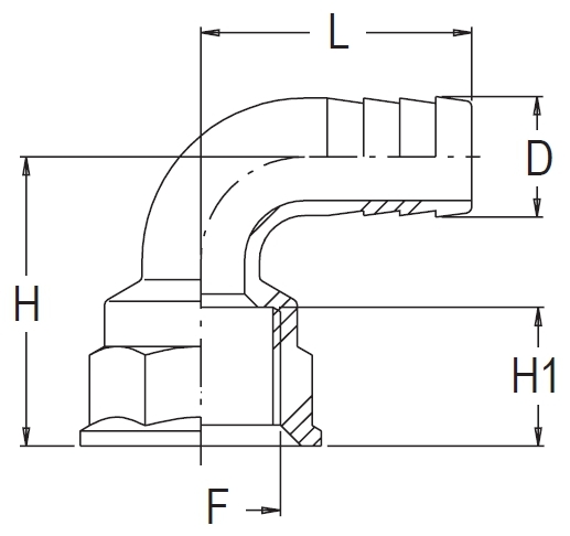 Főoldal/ Alkatrészek / Szántóföldi permetező/ Szívó- és nyomóág/ Fitting/ 90°-os tömlővég menetes anya/ 1"B tömlővég D=30,90°