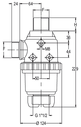 Robusztus kialakítású szívószűrő ürítőszeleppel, mely 150 liter/perc áteresztő kapacitású szűrőházból és 32 Mesh finomságú Inox szűrőbetétből áll.