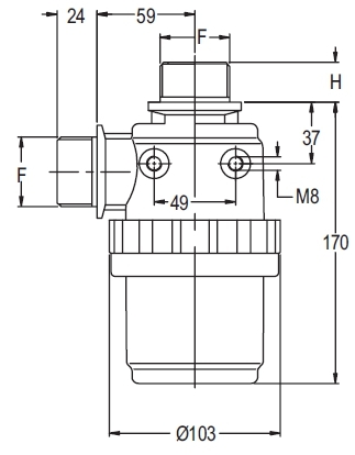 Robusztus kialakítású szívószűrő, mely 100 liter/perc áteresztő kapacitású szűrőházból és 100 Mesh finomságú Inox szűrőbetétből áll.