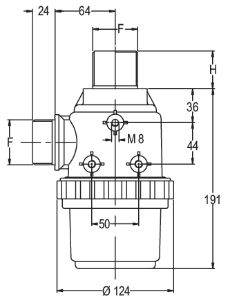 Robusztus kialakítású szívószűrő, mely 150 liter/perc áteresztő kapacitású szűrőházból és 32 Mesh finomságú Inox szűrőbetétből áll.