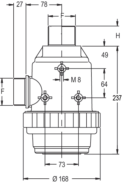 Robusztus kialakítású szívószűrő, mely 180 liter/perc áteresztő kapacitású szűrőházból és 32 Mesh finomságú Inox szűrőbetétből áll.